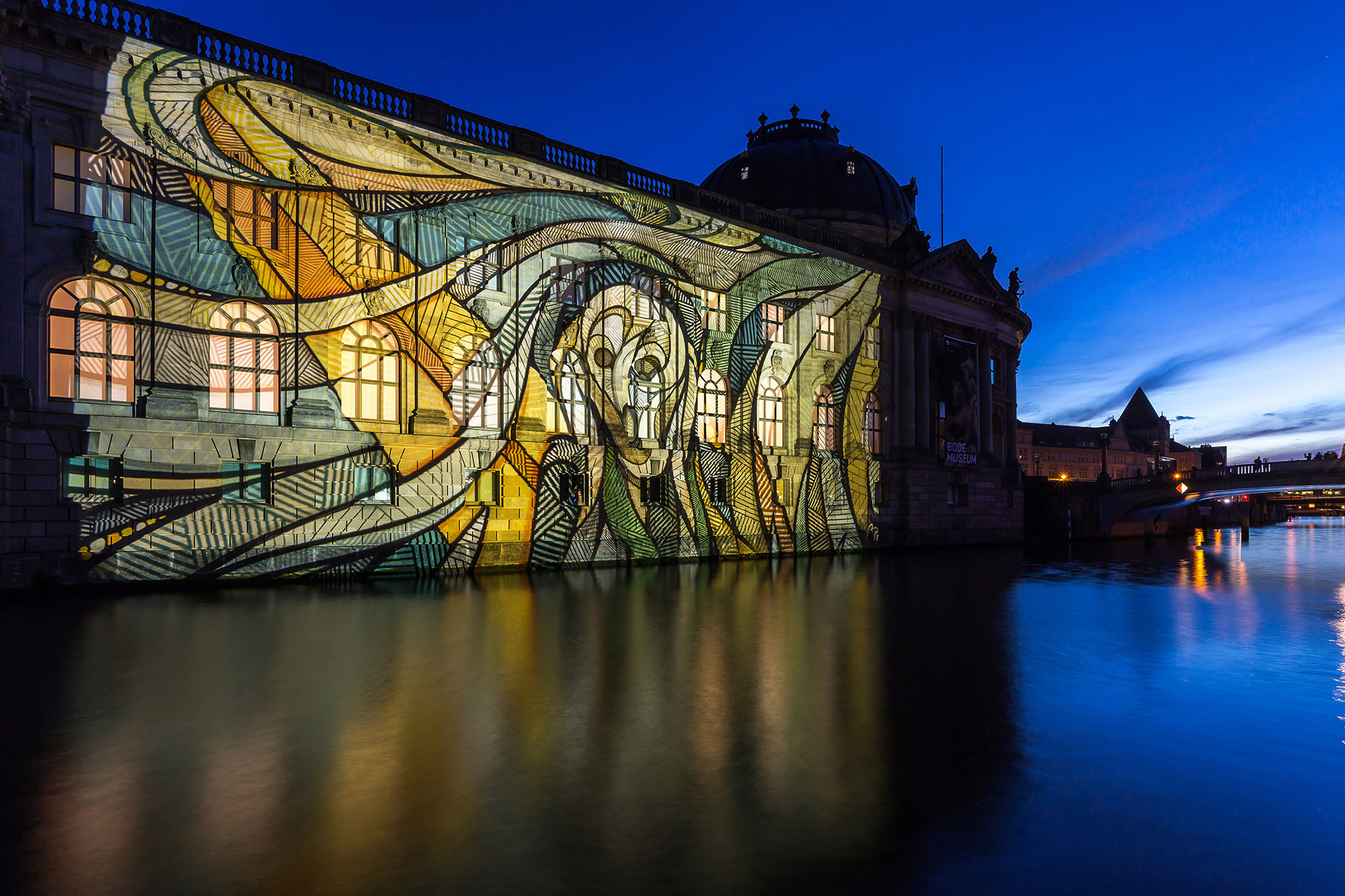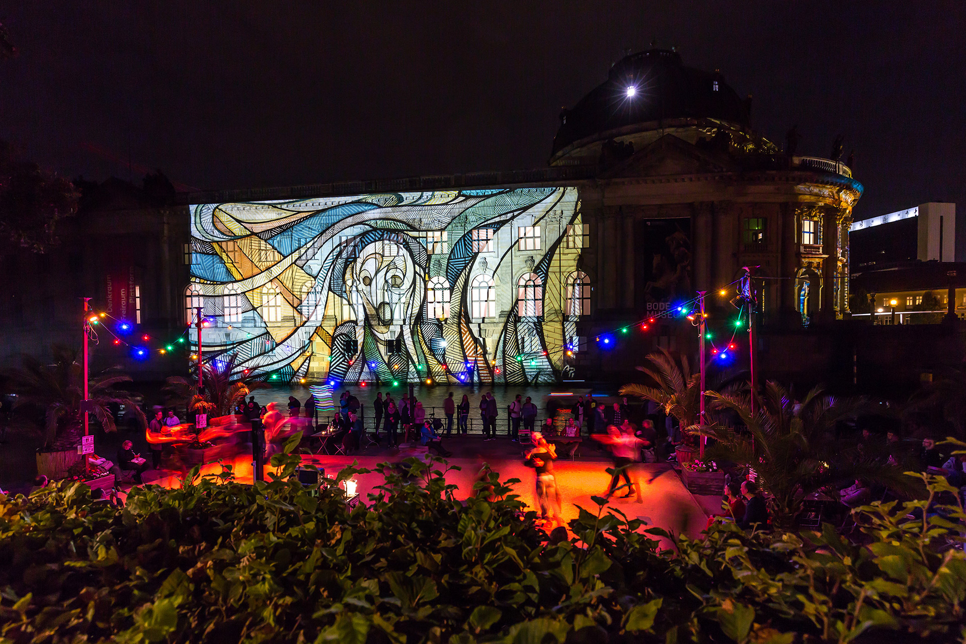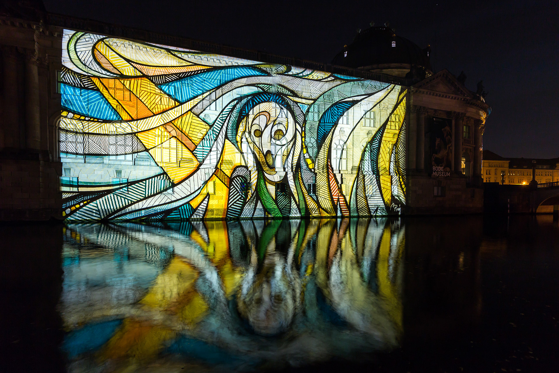 I contributed a few of my artworks to the Festival of Lights in Berlin. After reworking them a little bit, they were shown for almost two weeks on some of the most famous buildings in Berlin: The Bode Museum in Mitte, the Upper West in Charlottenburg and of course the Brandenburg Gate in also in Mitte.