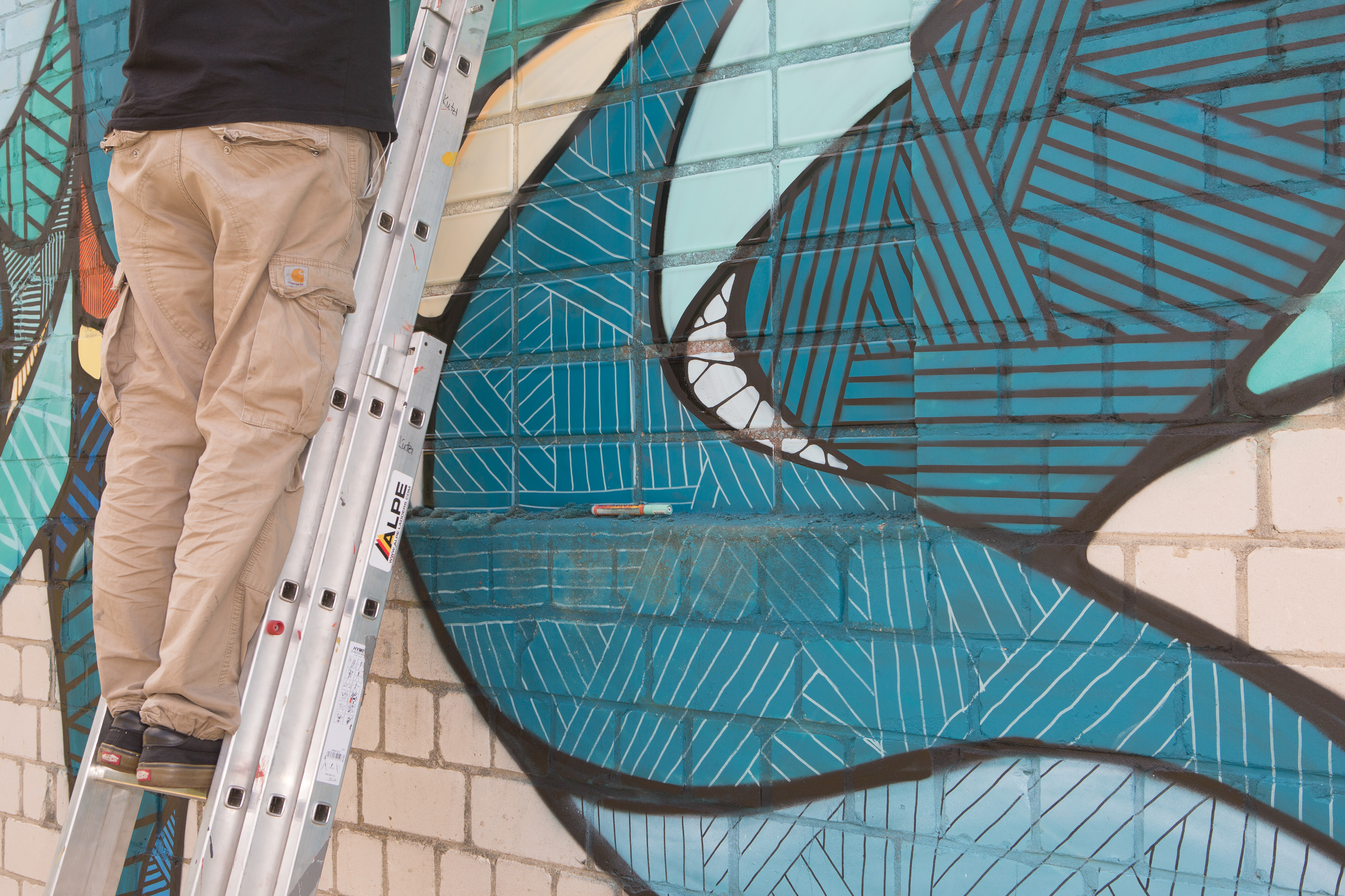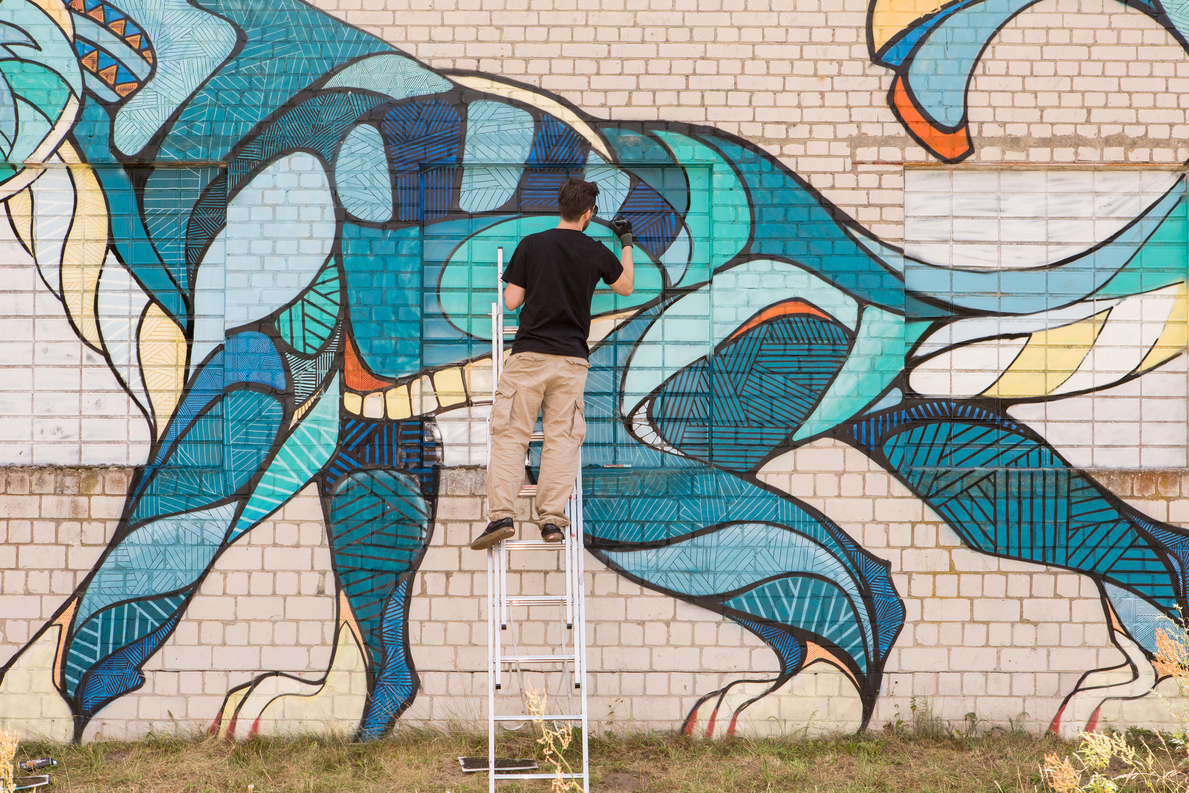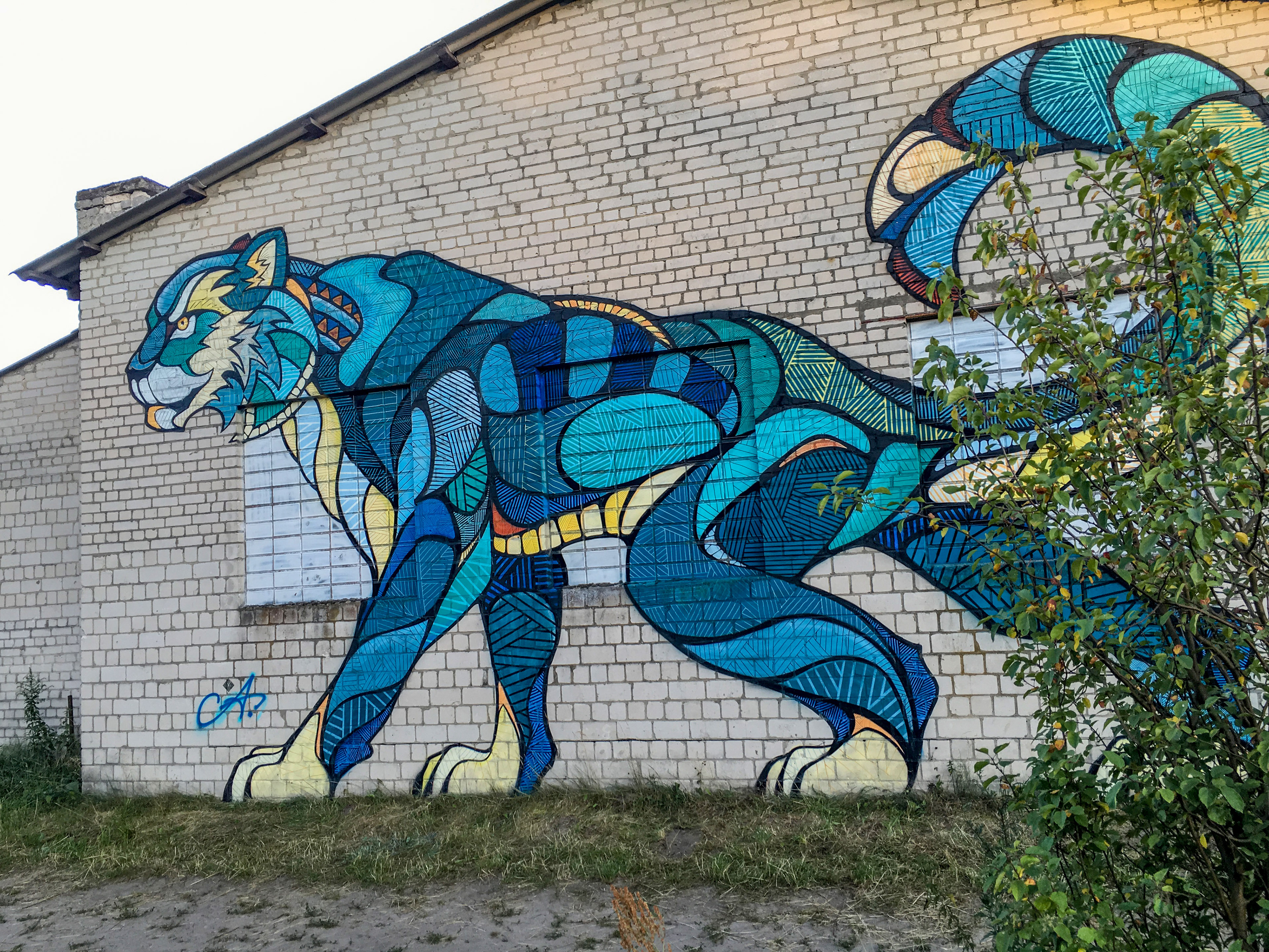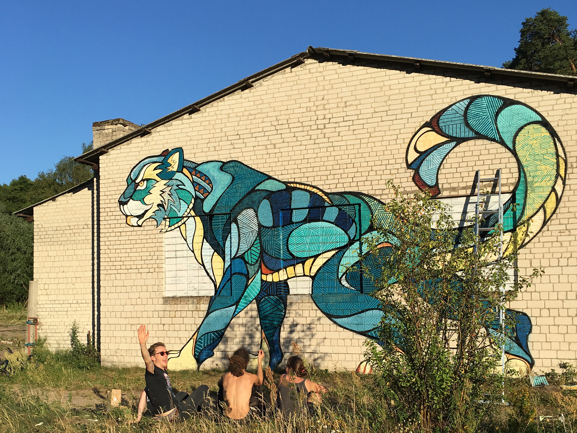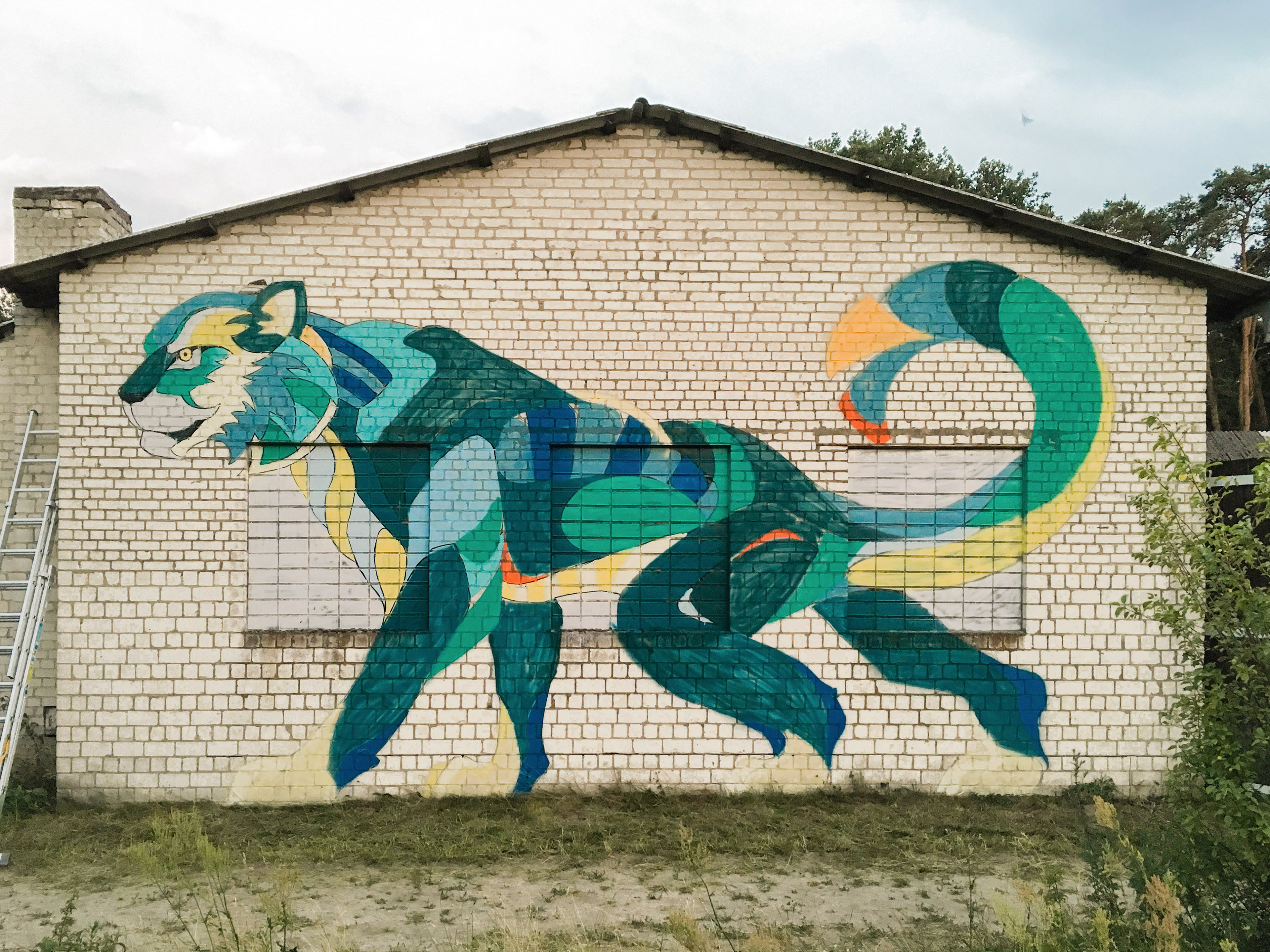 Werkstatttraum Berlin e.V. organized a secret festival in in the countryside outside of Berlin. Since I was friends with those guys for some years, I was happy to create a mural for their event. This funky cat is about 8,5 to 4,5 meters. Thanks a lot to Alex Trattler, who made most of these photos.