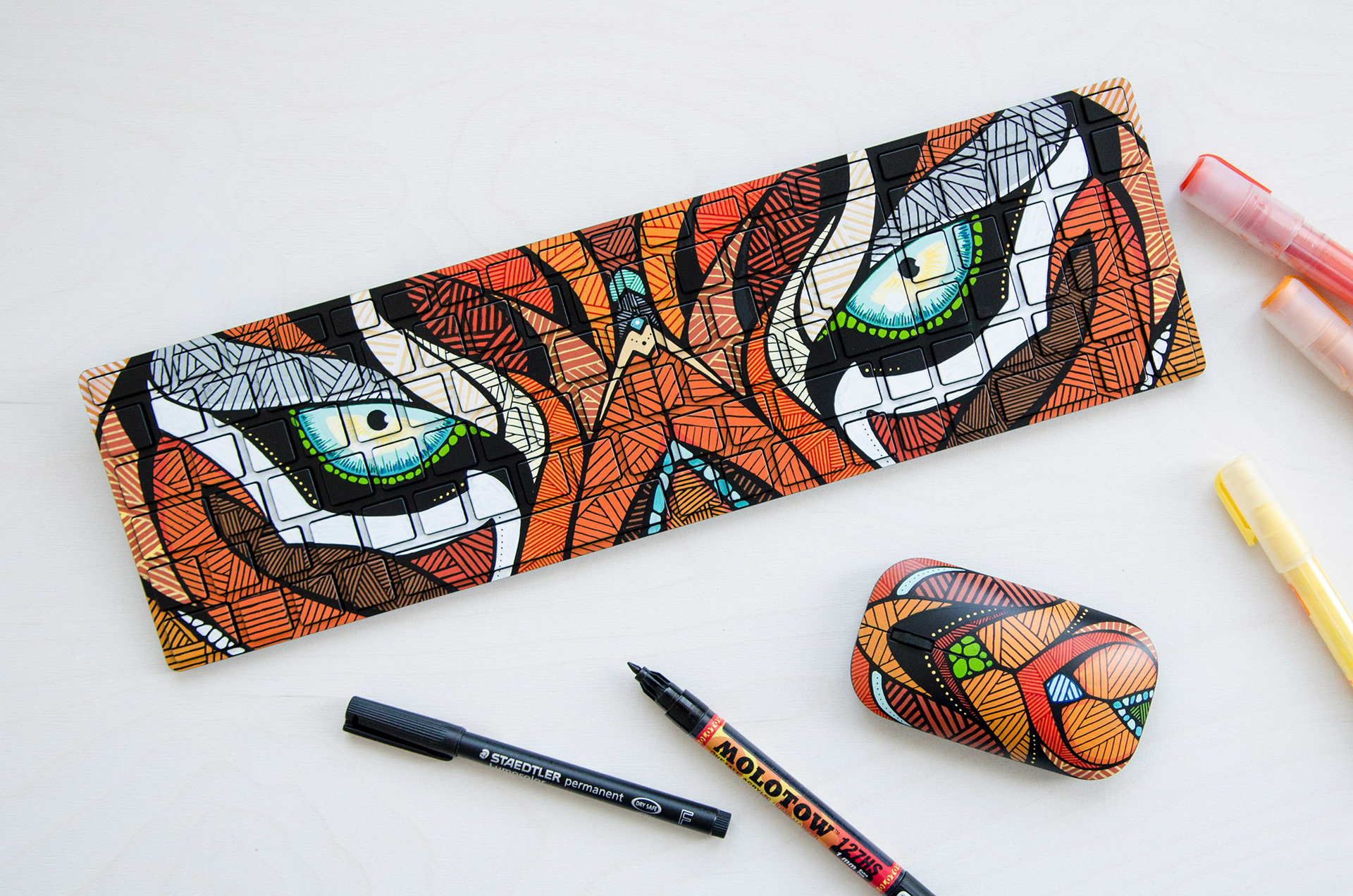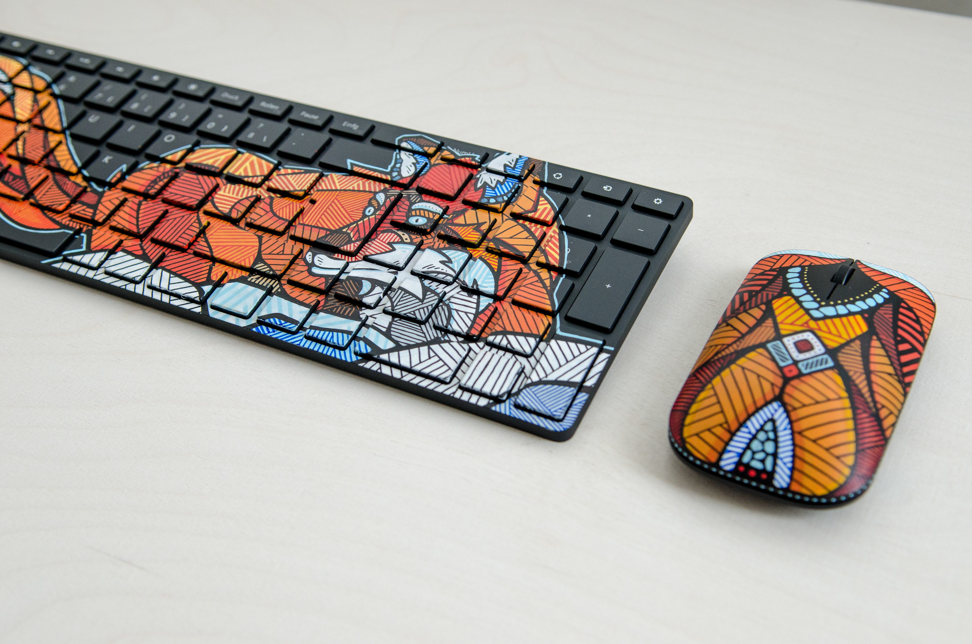 Microsoft asked me to create some unique hand-painted versions of their Designer Bluetooth Desktop. Used for different contests and trade shows as well as some online promotions, these pieces still had to function afterwards. Made with Acrylics and a bit of varnish.